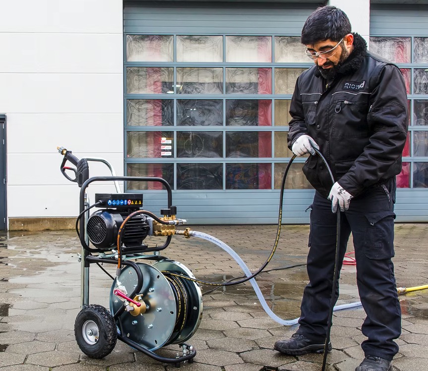 The Rioned MiniJet is a high pressure jetting machine for residential- and light commercial use. Equipped with a silent and powerful electric motor and professional pump it is ideal for cleaning drains from 25 to 100 mm.